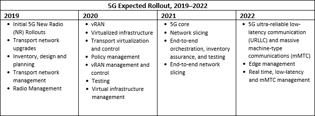 These areas align with the expected rollout of 5G, as shown in the table below: