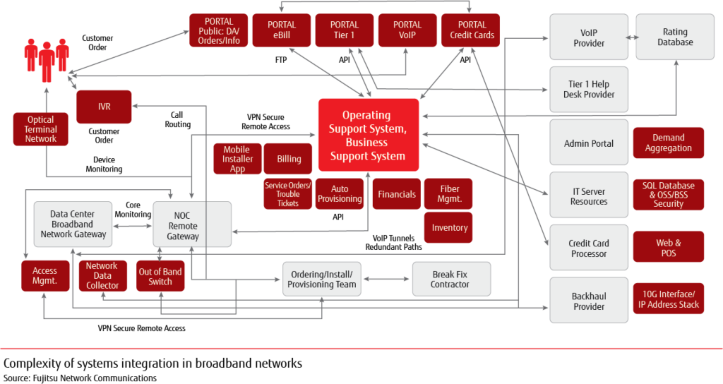 Successfully building and launching a broadband network involves a massive integration effort. A broadband network is composed of dozens of operations and business subsystems and procedures. These must all be engineered, tested, and documented to ensure that they work together efficiently and effectively. It’s every bit as complex as your power generation and distribution network; the key difference is that your staff is intimately familiar with what it takes to integrate and operate power systems, but broadband is another animal entirely.
