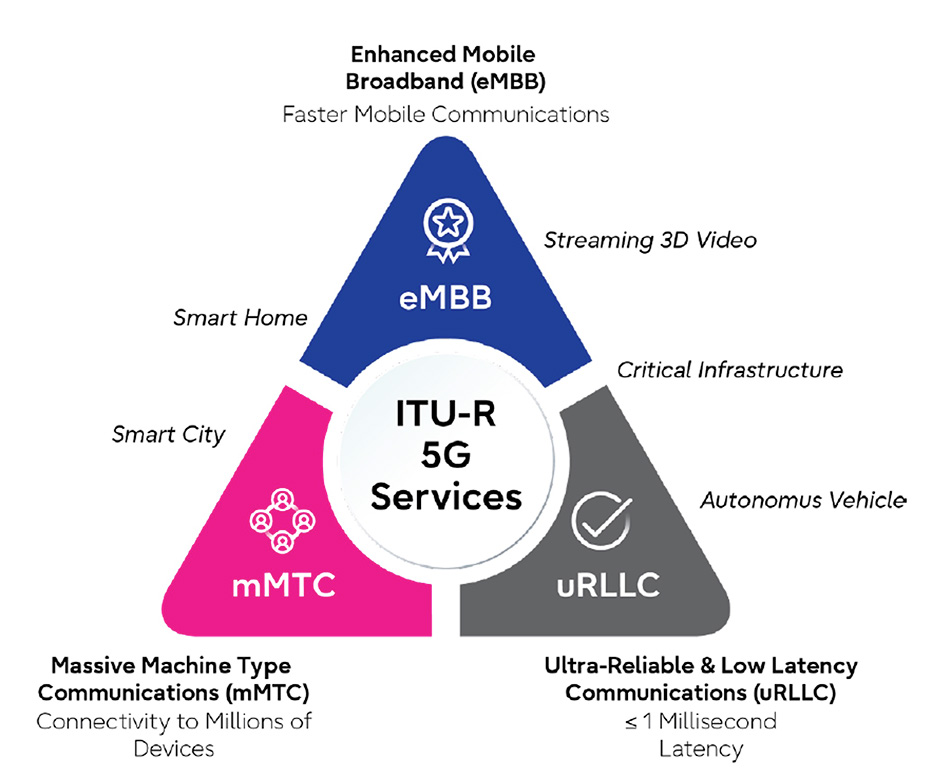 Unlike 4G networks, 5G encompasses applications that include and surpass faster downloads and fixed wireless access. Many new service offerings are available or being planned thanks to the low latency and significant increase in speed and capacity that 5G brings. These applications fall into three areas with somewhat disparate performance criteria as shown below and in figure 1.