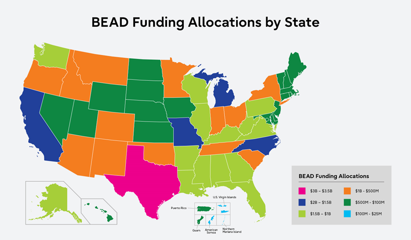 In June of this year, the NTIA allocated a total of $42.5 billion in funding to all 50 states, plus the District of Columbia and five territories, to enable deployment of affordable high-speed broadband as an integral part of the Internet for All initiative. The largest allocation was awarded to Texas, followed by California and Missouri, with nineteen states each receiving more than $1 billion. In addition to the planning, mapping, and deployment of broadband networks, the BEAD program will also support projects designed to ensure equal opportunities for internet access.