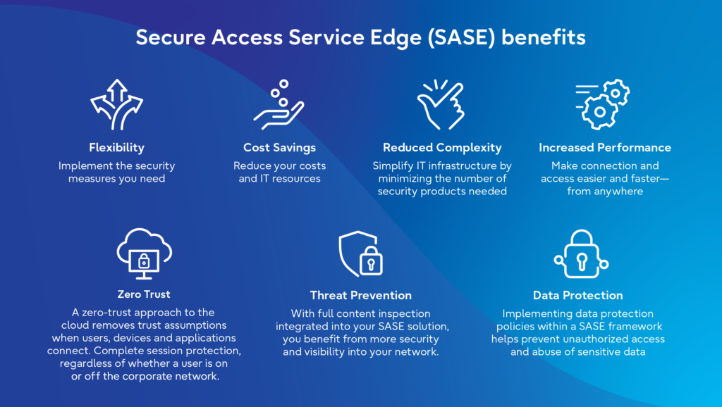 SASE network visibility can also include providing key performance data on what type of data is traversing the network, where and when bottlenecks are occurring, etc. Armed with this information, network managers can better allocate bandwidth and resources to optimize performance based on peak load times. SASE also enables network operators to reduce workloads on their already over-worked staff by offloading many networking and security tasks to the SASE vendor or provider.